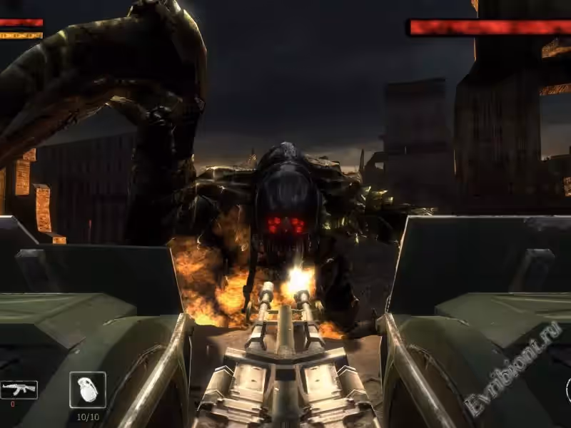 - В игре сочетается ближний бой и бои на дистанции с помощью земного оружия также есть и инопланетное более смертоносное оружие которым вы сможете владеть благодаря мутации героя.