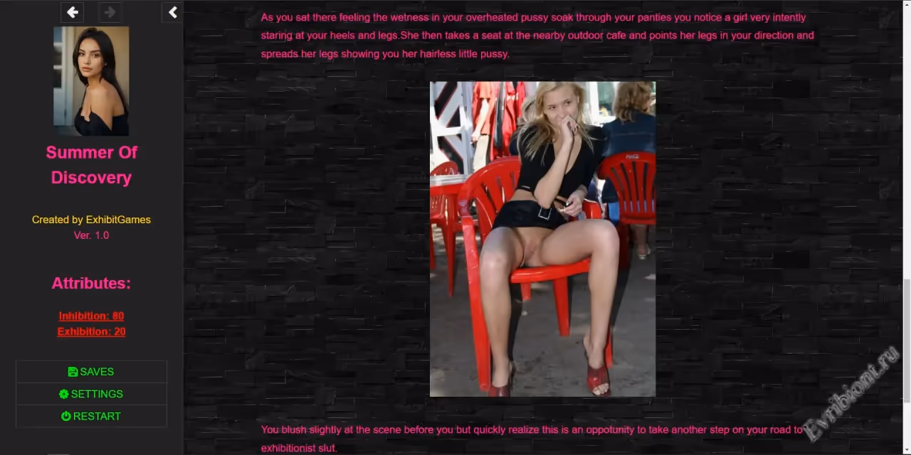 Жанр: Измена, Разврат, Эксгибиционизм, Главная Героиня-Женщина, Лесбиянка, Мастурбация, Множественные Концовки, Оральное, Анальное Порно, Секс-Игрушки, Поддразнивание, Текстовое, Вагинальное, Вуайеризм