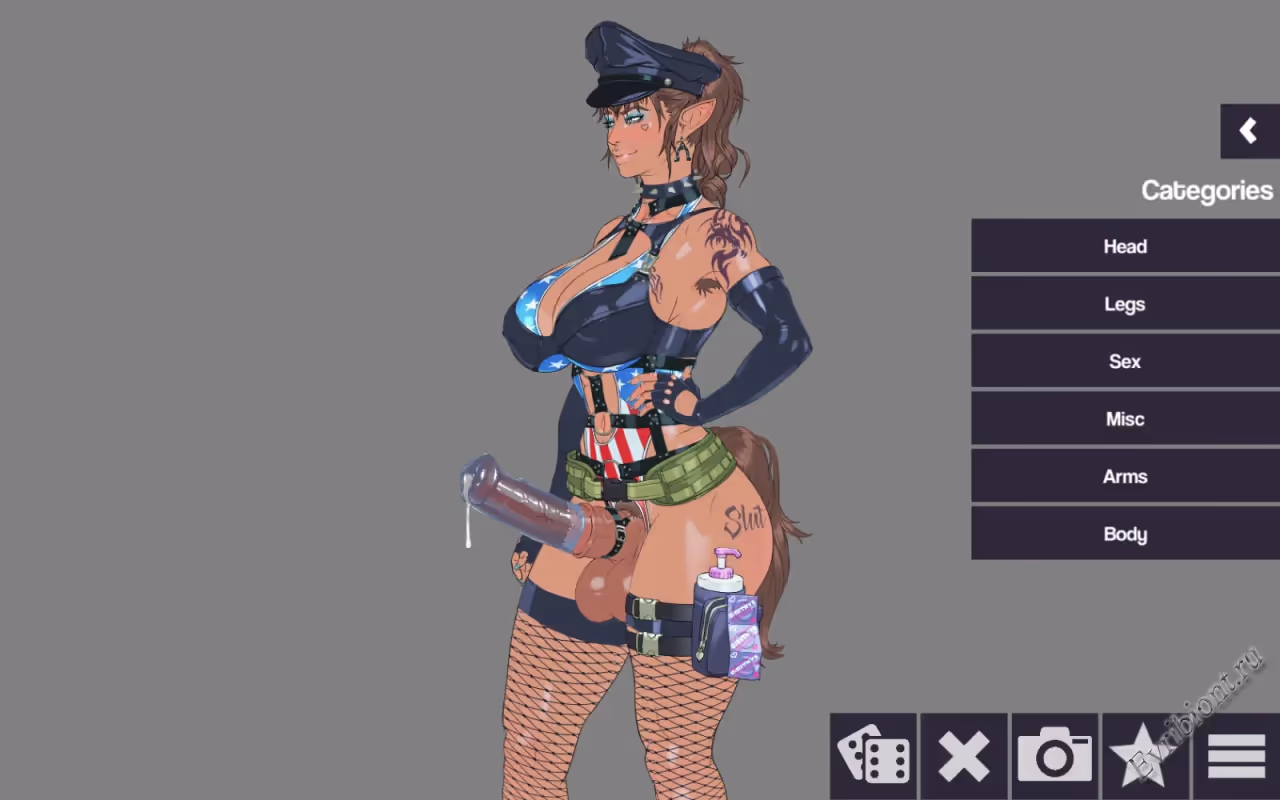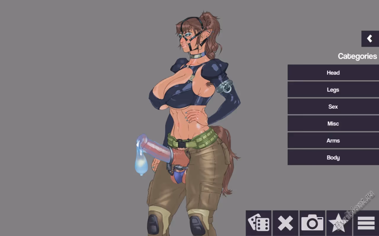 Изучите более 300 различных предметов и тысячи возможных вариантов из ее фетиш-гардероба. Пусть случайная кнопка определяет ее вид. Чтобы получить бонусные предметы, оденьте героиню в соответствующий комплект одежды!