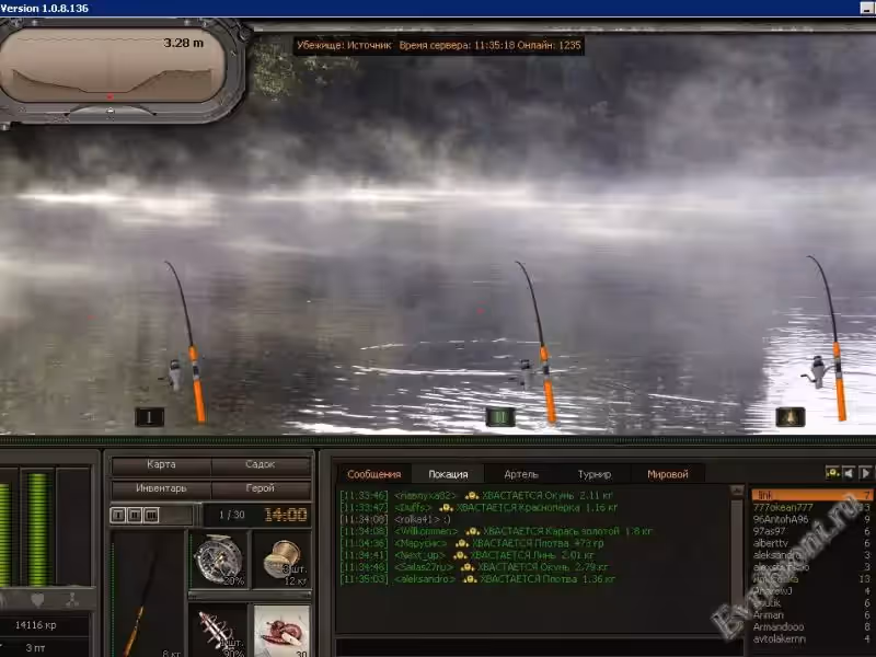 Это рыбалка для тех кто не хочет никуда ехать чтобы насладится таким замечательным способом время провождения как рыбалка. Не нужно выходить даже с дома для того чтобы закинуть удочку и вытянуть Налима килограмм так на пять, вы можете играть с вашими друзьями и все ровно с какого они города или страны. Очень красивые водоёмы, рыба ведёт себя как настоящая и не забывайте что вы ловите рыбы в поле ядерном мире вы можете встретить в водоёмах рыб мутантов. Очень удобный и понятный на интуитивном уровне интерфейс игры даст возможность выиграть в самых разнообразных турнирах. Также в игре есть квестовые персонажи которые отправят вас выполнять тяжелые задания, вам помогут завершить их ваши навыки и умения полученные за новые уровни. В игре больше ста водоёмов в которых вы сможете ловить рыбу, также очень много разновидности рыб, снастей и и где-то пятьдесят различных наживок.