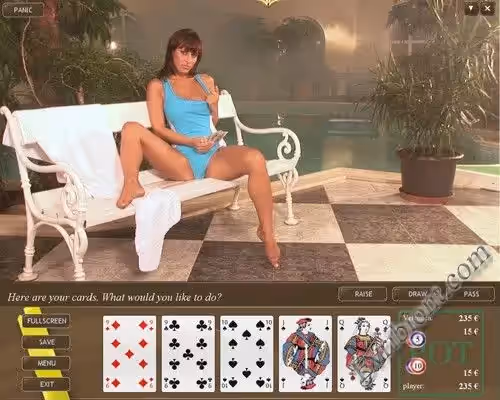 Если вы не когда не играли в покер но хотите научится эта игра вам подойдёт. В ней очень много эротических фотографий и видео материалов которые станут вам доступны после вашего выигрыша, у вас будет огромный стимул быстро научится играть в покер и начать обыгрывать прекрасных девушек. Видео заставки в шикарном качестве, всего в игре пять часов видео эротического содержания. Также в игре пять девушек шикарной наружности.