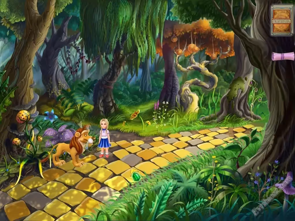 В игре как и в рассказе Элли и Тотошка должны попасть в Волшебную страну. Но в пути случилась неприятность, Тотошка случайно попал в плен к черному камню Гингемы. Теперь вам нужно спасти лучшего друга Элли. Для этого вам нужна волшебная книга по географии, в ней хранятся все знания о нашей планете. Вы узнаете очень много интересных фактов о планете Земля - о космосе, небе, животных и растениях, о людях из дальних стран.