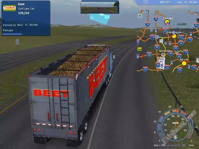 В этой игре у вас будет огромный грузовик с большим прицепом, у вашей фуру будет целых восемнадцать колёс. Теперь вы решили добиться успеха с помощью самых новых грузовиков. В этой игре вы сможете попробовать себя не только в роли водителя грузовика но и в роли диспетчера или босса компании по груза перевозкам.