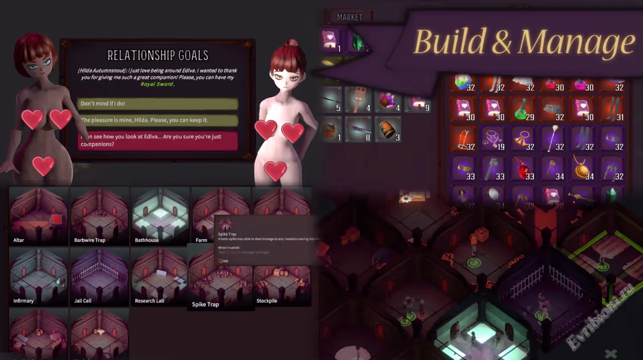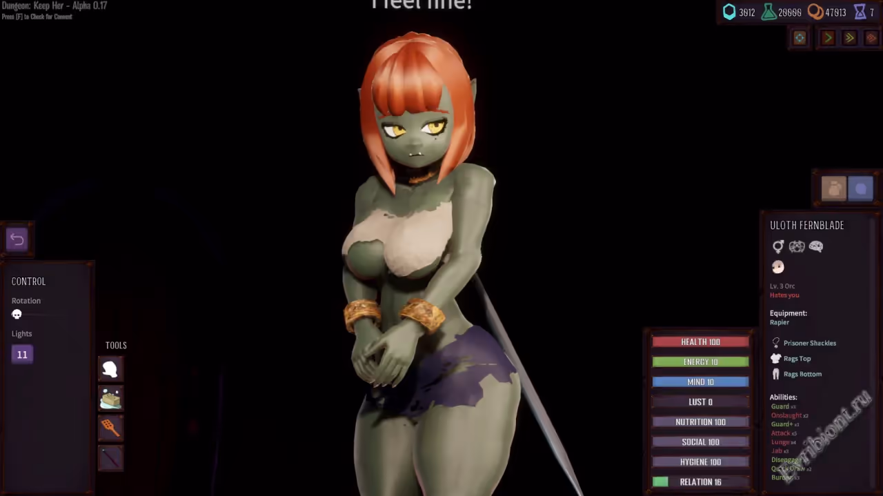 Dungeon: Keep Her – это уникальная 3D-игра-песочница для взрослых, где вы станете мастером собственного подземелья. Создайте персонажа-хранителя, выбрав предысторию из множества вариантов, и погрузитесь в мир управления, сражений и захватывающих приключений. Процедурно сгенерированные слуги с уникальной внешностью и чертами характера добавляют динамику. Тренируйте их, стройте комнаты, защищайте подземелье от захватчиков и наслаждайтесь моментами близости. В игре вас ждут элементы фантазий с футами, транс-персонажами и даже монстрами, которые делают геймплей ещё интереснее.