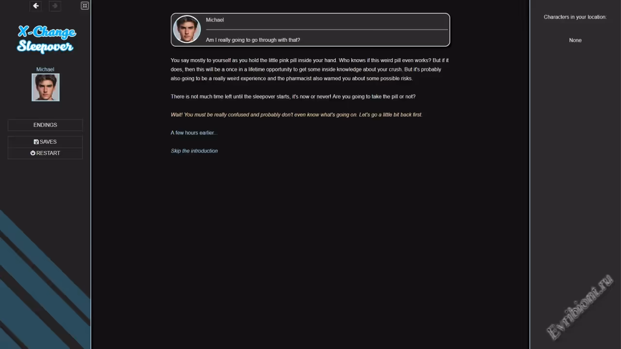 X-Change Sleepover – это интригующая игра для взрослых, где история разворачивается вокруг последних дней в школе. Вы играете за парня, готовящегося к колледжу, но есть проблема – вечеринка вашей пассии Эммы только для девушек. Готовы ли вы рискнуть всем ради шанса признаться ей в чувствах или даже потерять свою девственность? Используйте смекалку, чтобы попасть на вечеринку, где страсти будут накаляться, а неожиданные повороты добавят пикантности в эту историю.