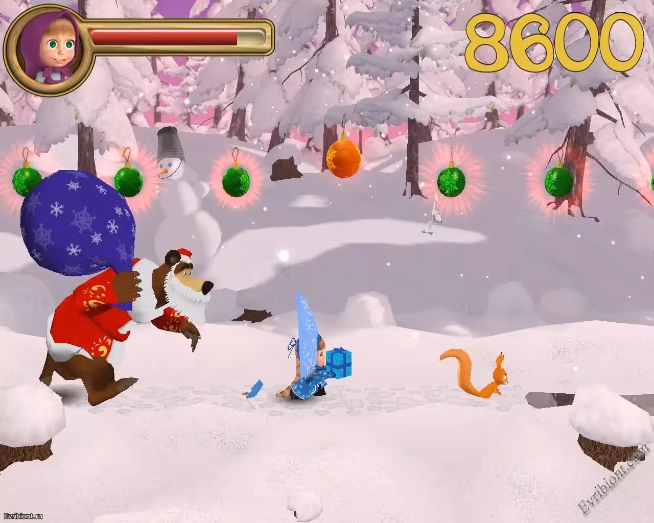 Игра выполнена по мотивам всем известного мультфильма "Маша и Медведь". В игр вас ожидают очень весёлые приключения проказницы Маши, а также очень хозяйственного медведя.