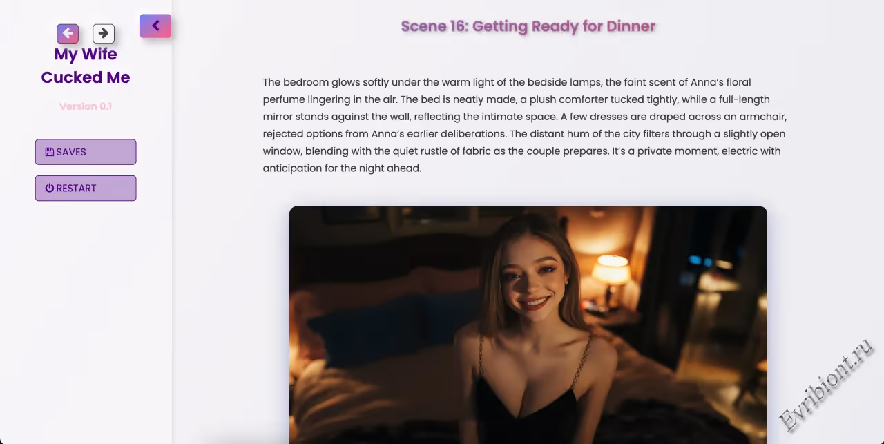 Это игра не для всех. Если вы ищете провокационные сюжеты, психологическую интригу и запретные темы — вы по адресу. Здесь каждый рассказ откроет вам тёмную сторону желаний, ревности и похоти.