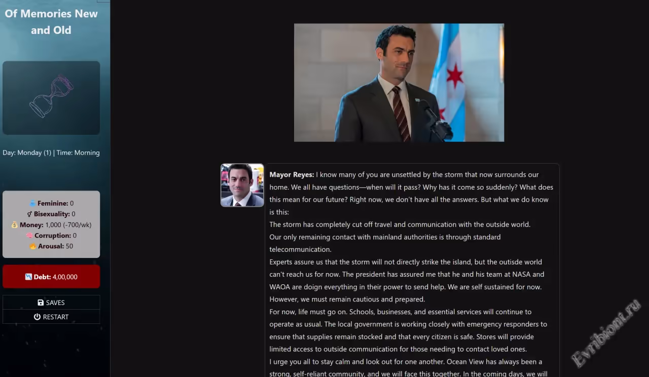 Of Memories New and Old — это эротическая визуальная новелла, где переплетаются память, желания и трансформация личности. Когда мощный шторм изолирует остров Оушен-вью от внешнего мира, Лукас, 21-летний студент, сталкивается с тем, как его прошлое, чувства и окружение начинают переплетаться самым неожиданным образом.