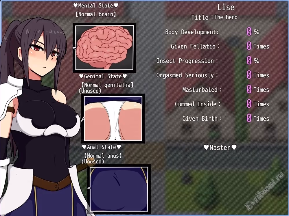 Жанр: 2D-игра, 2DCG, Ahegao, Анальный секс, БДСМ, Большая задница, Большая грудь, Коррупция, Наркотики, Фэнтези, Главный герой-женщина, Фут-фетиш, Лапанье, Унижение, Внутренний вид, Японская игра, Лактация, Мужское доминирование, Мастурбация, Контроль над разумом, Монстр, Оральный секс, Беременность, Изнасилование, Ролевая игра, Песочница, Сексуальные игрушки, Сексуальные домогательства, Раб, Тренер, Вагинальный секс