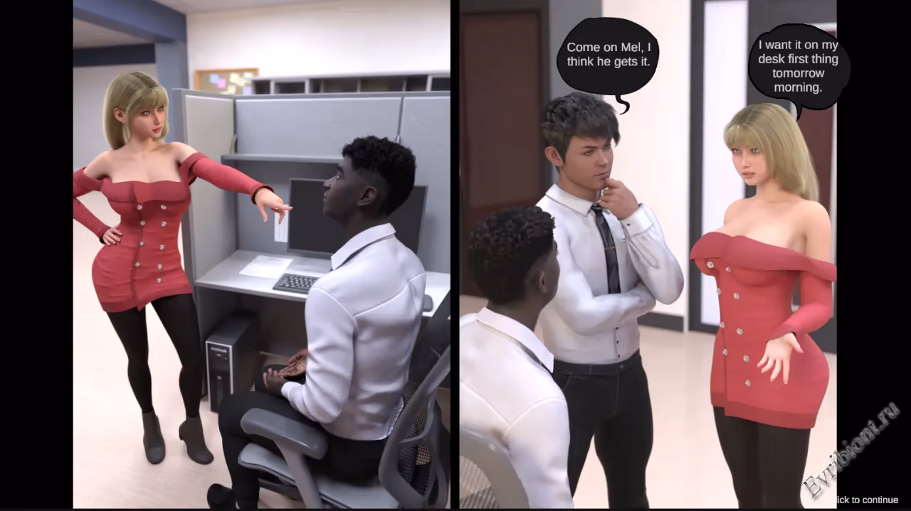 Office Life — это откровенная визуальная новелла/комикс, где серая рутина офисной работы внезапно превращается в череду страстных приключений. Главный герой Джон устал от придирок босса, но случайная находка раскрывает тайну, которая меняет всё. Теперь его будни — это не только отчёты и планёрки, но и горячие сцены, где есть шантаж порно, интриги и неожиданные соблазны.