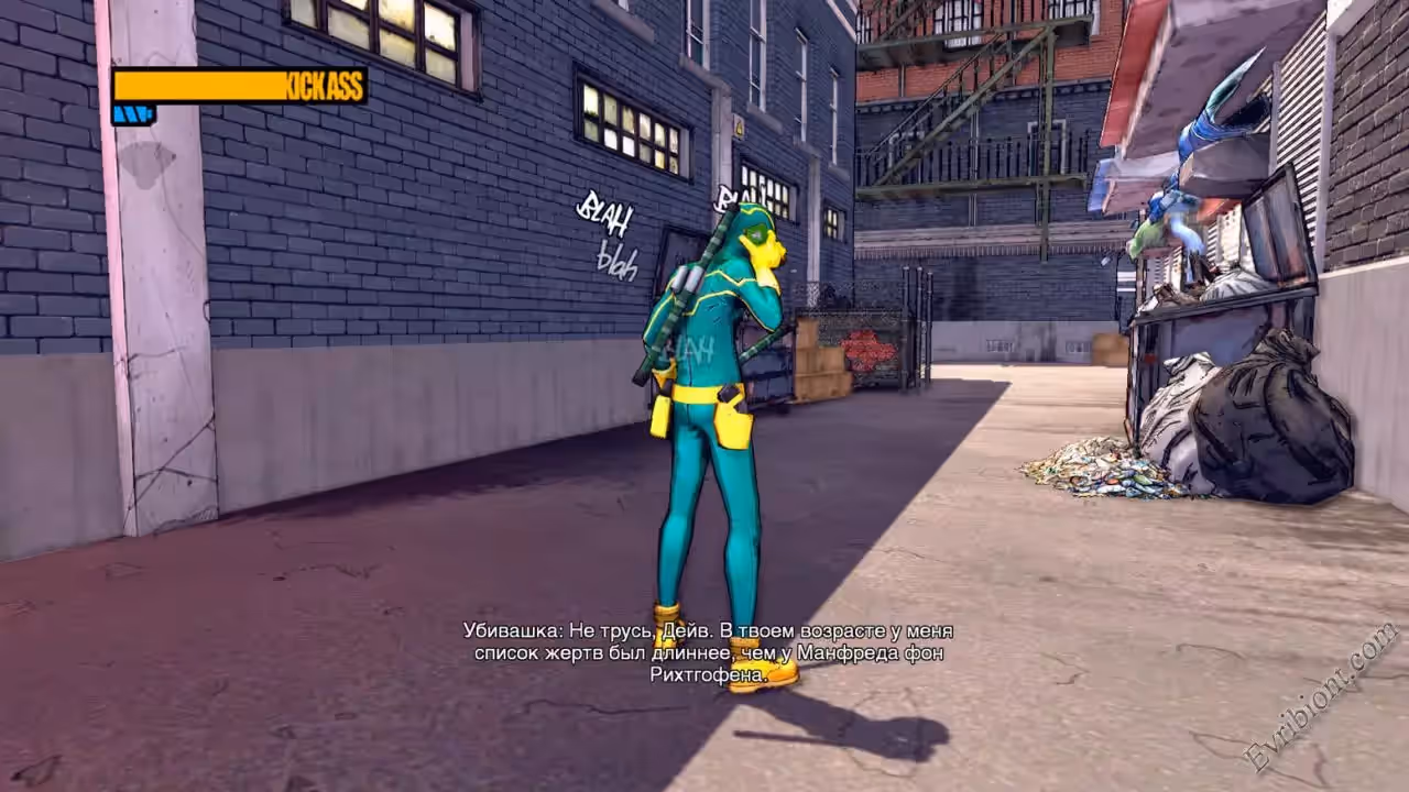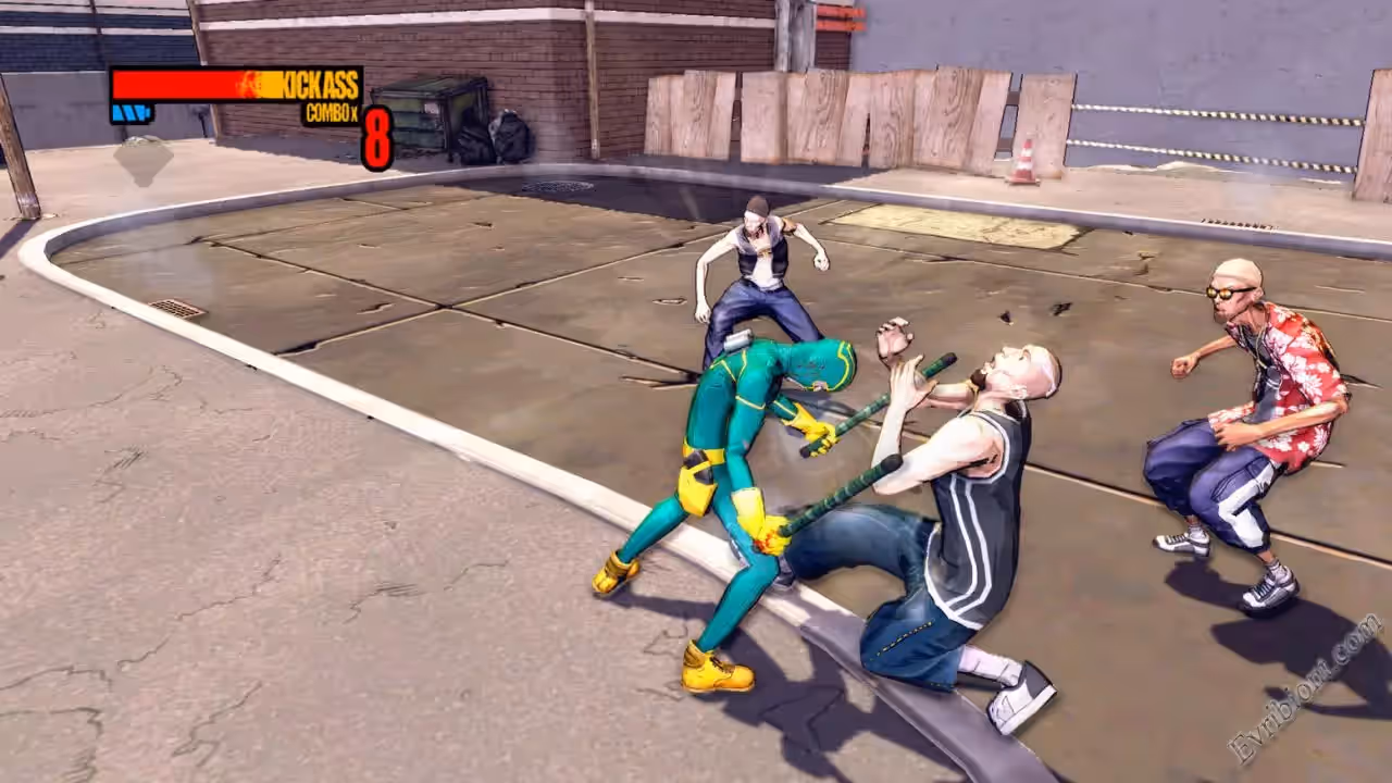 Данная игра была создана по мотивам фильма. Как и в фильме самый обыкновенный подросток решил стать самым настоящим супер героем. Он заказал себе костюм и выдумал имя "Kick-Ass". Произошло поистине невероятное, он стал любимцем людей, ролики с его участием начали появляться в интернете. Но такая популярность имеет и свои минусы, о нем узнали по настоящему опасные люди и теперь он будет противостоять против них.