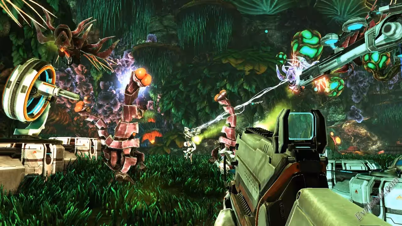 Игра Sanctum 2 является продолжением гибридной игры Sanctum вторая часть как и первая совмещают в себе несколько несовместимых на первый взгляд жанров. Это Стратегия и Экшн от первого лица. Во второй части игры Sanctum вас ждут много новых карт, новые башни и самое главное это выбор из четырех классов защитников, которых вы сможете прокачивать, а также открывать новое более лучшее оружие. Нет идеального класса персонажа, у всех есть как сильные так и слабые стороны, так что учтите что для того чтобы нормально справляться с заданиями желательно иметь несколько живых союзников. Снаряжение персонажа настраивается через новую систему. Вы можете сделать собственные наборы оружия, башен и перков, но помните что это нужно делать с умом. Ведь вы, это самая последняя надежда всего человечества при защите людей от армии инопланетян. Вообще игра Sanctum 2 вобрала в себя множество жанров игровой индустрии. К примеру по мере прохождения игры вы узнаете секреты планеты ЛОЭК 3 и поймете из за чего инопланетяне хотят разрушить Ядра.