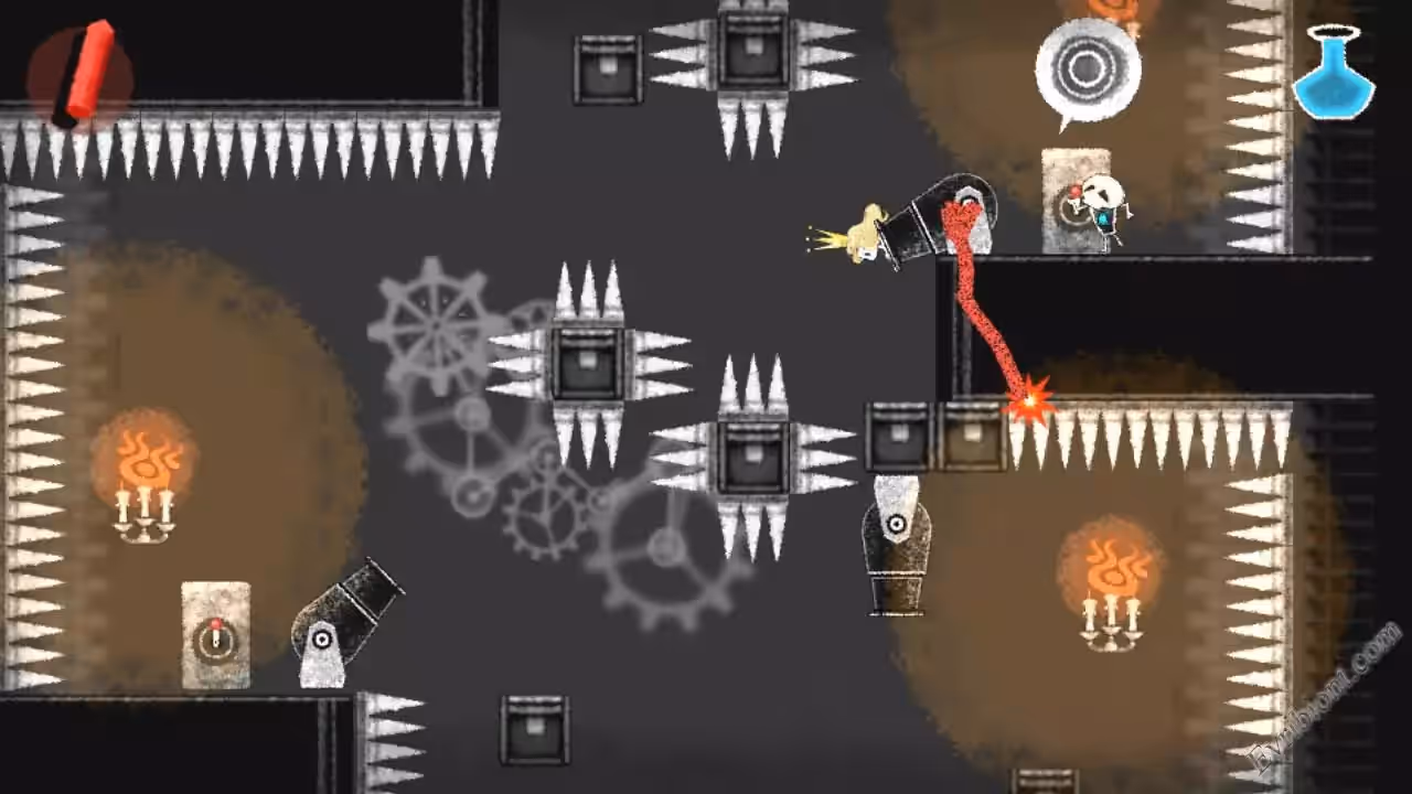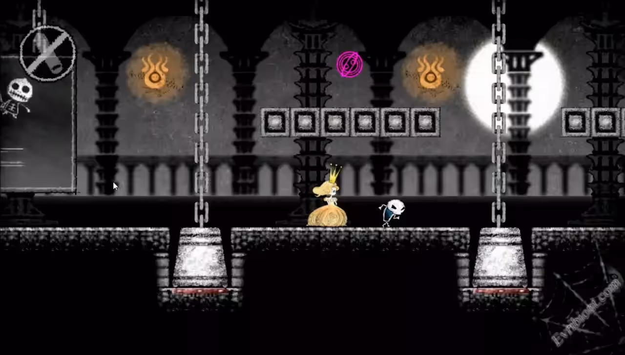 Ищите платформер с головоломками и приключениями, где вы играете очень отважным и находчивым скелетом, у которого хватили смелости чтобы бросить вызов, да не кому ни будь а самому темному лорду и это все для того чтобы спасти принцессу что была у него в плену? Если я прав, значит вы искали игру "Dokuro". Вас ждет классическая история, он спасает принцессу из заточения лиходея. Вот только принцессу будет спасать не принц на белоснежном коне с сверкающими доспехами, а маленький и совсем незаметный скелет. Конечно же принцесса не обращает внимание на скелета, но у него есть способность на короткое время превращаться в принца, которым он когда то был. Увидев его принцесса влюбляется в него с первого взгляда. Вот так и будет превращаясь в принца и скелета помогать принцессе выбраться из замка лорда тьмы, но учтите это будет очень даже не просто, ведь замок просто кишит различными ловушками. Вам понадобится смекалка и еще терпение чтобы завершить совою благородную миссию.