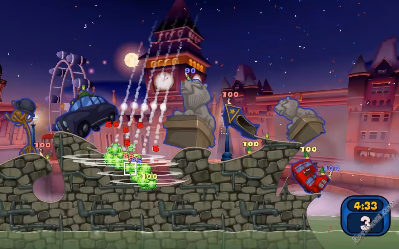В Worms Reloaded можно играть четверым соперникам онлайн, независимый режим мультиплеера на одном компьютере, множество разнообразного нового оружия, есть также достижения, доска почета.