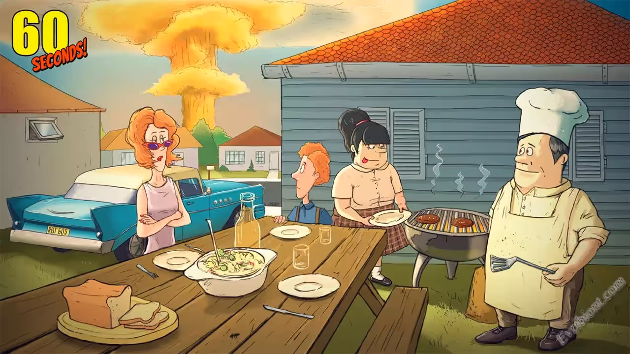 Игра о выживании самой обыкновенной семьи в экстремальных ситуациях. Как можно догадаться с названия игры, у вас будет 60 секунд для того чтобы собрать всех членов семьи в бункере, а также успеть собрать все необходимые вещи, к примеру еду и воду... Но вы не думайте что на сборе припасов и семьи все самое тяжелое закончится. Вам нужно будет распределять еду и стараться выполнить все потребности вашей семьи, за частую нужно будет выбрать чьи желания удовлетворить, так как на всех всего не хватит. Одним словом вас ждут тяжелые времена хаоса, и вам нужно будет весь этот хаос привести к нормальному виду, все это ради выживания вашей семьи.