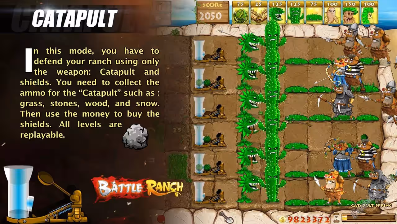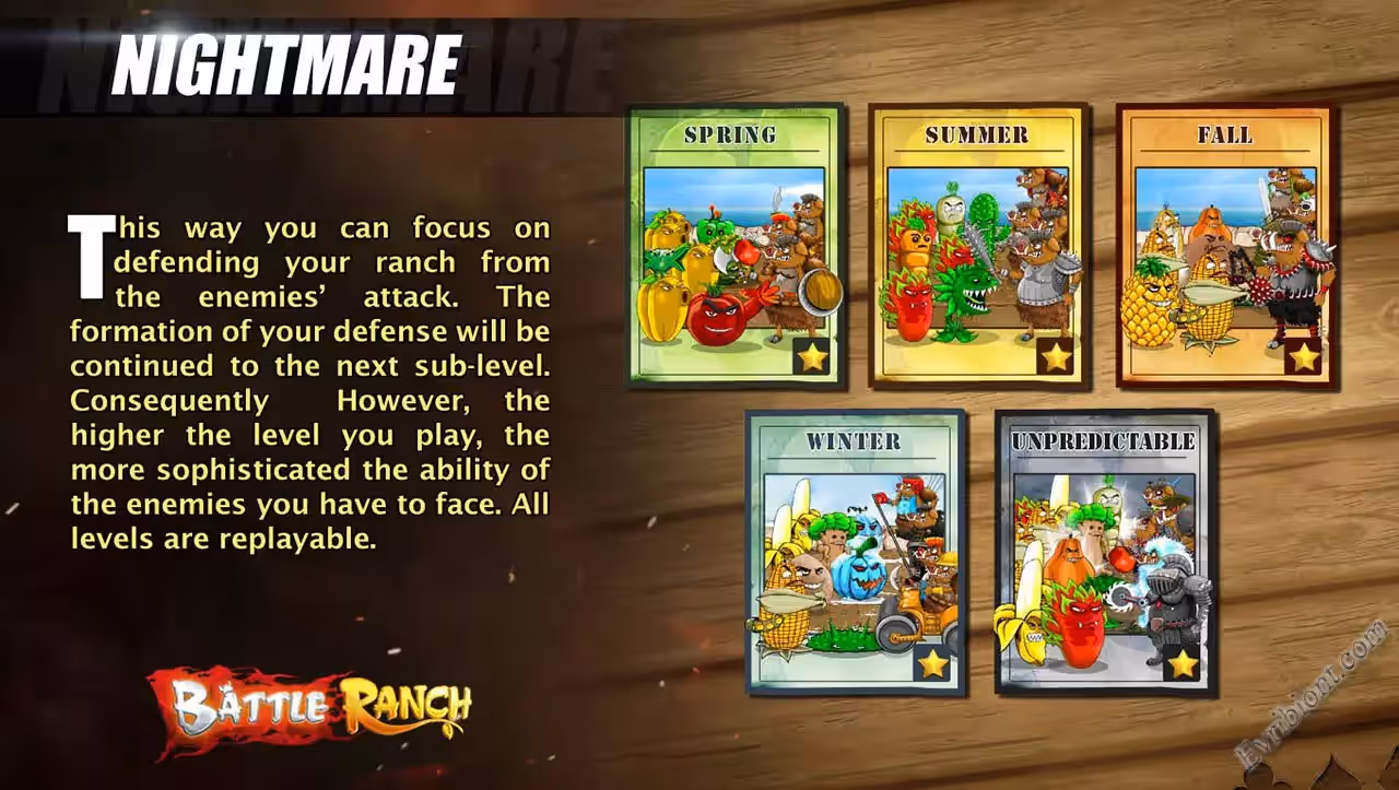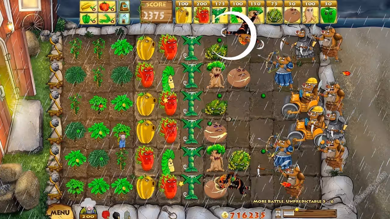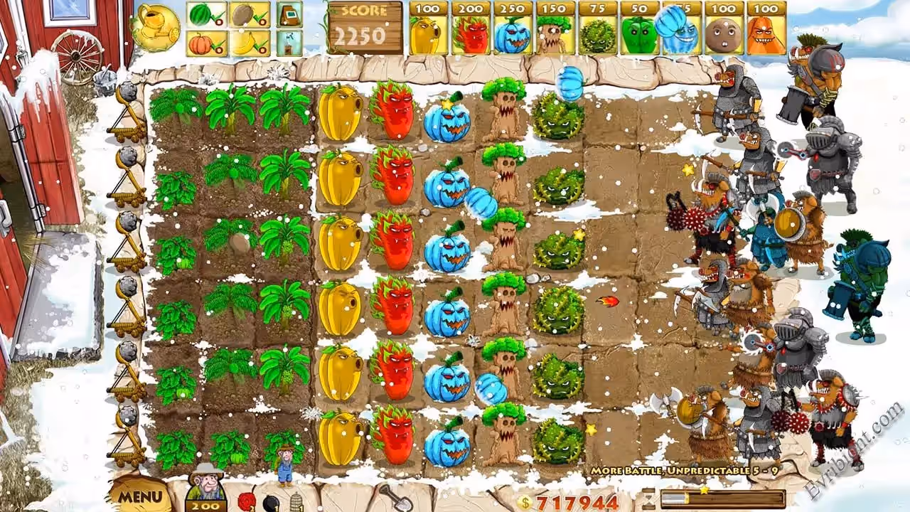 Для защиты ранчо вы будите использовать фрукты и овощи, в помощью растений вы станете воздвигать ряды обороны, чтобы кабаны не прошли к ранчо. При высаживании растений, вам стоит применить тактику и стратегию, ведь вас ждет настоящие орды вооруженных врагов.