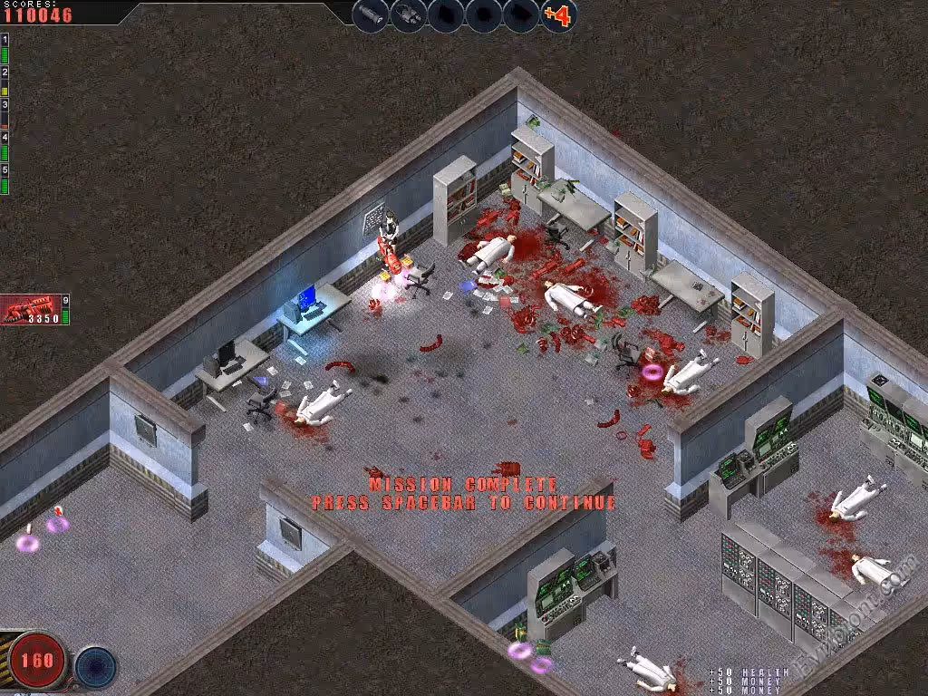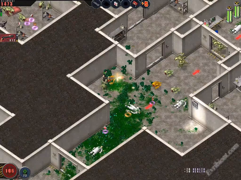 Командование объявляет тревогу: инопланетные монстры захватили секретный бункер, в этом бункере ученые создавали сверх мощные оружия. Вам приказали добраться до бункера и уничтожить всех пришельцев. Это сделать будет очень тяжело, ведь везде уже укрепились полны монстров которые невероятно опасны. Для того чтобы выполнить задание вам нужно будет очень хорошее оружие и обмундирование, его можно найти в тайниках по всей базе а также купить в специальных магазинах, магазины находятся на каждом уровне. Вам очень помогут чипы которые улучшают разные характеристики персонажа, также есть спец дроид который будет летать возле вас и уничтожать силы врагов в автоматическом режиме. Думаю эта игра понравится очень многим игрокам, игра в 2-D. Вам будут доступны девять разных орудий а также множество аптечек и бронежилетов.