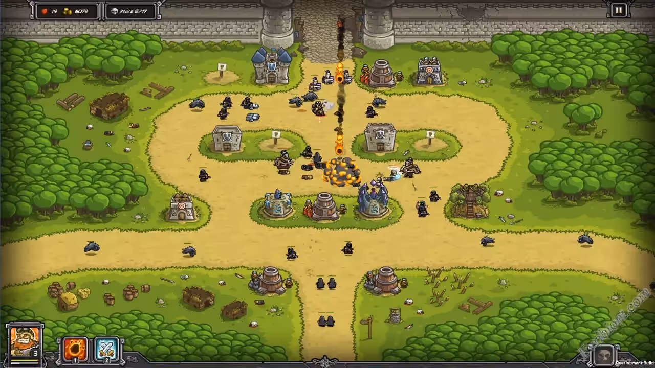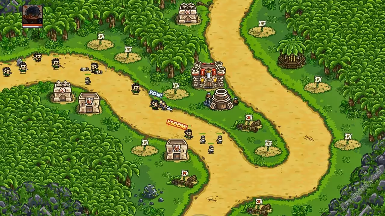 Kingdom Rush - это классическая игра в жанре башни обороны. Как и принято, на ваш город будут нападать различные враги, а вы с помощью защитных башен должны отбивать их войска волна за волной. Игра стратегическая, так как вам необходимо продумывать тактику защиты. В игре красивая рисованный графика, множество уровней, улучшений и героев. Но в игре конечно же есть некоторые особенности, вы не прост строите башни и они с далека всех бьют, с башен будут выходить на дорогу юниты и защищать ее. Конечно же лучники буду стоять на башнях и от туда расстреливать нечисть что движется к вашим домам, а вот рыцари в рукопашную будут сражаться прямо на дороге к городу.