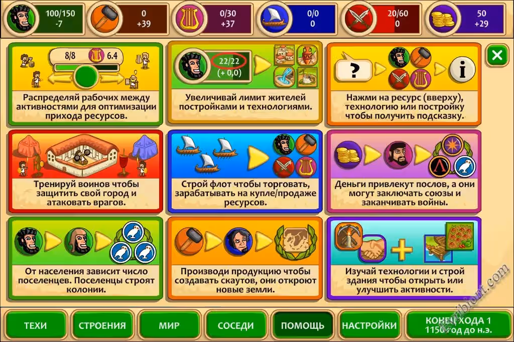 Игра "Пре-цивилизация Мраморный век" это пошаговая стратегия, причем историческая. Начинается все с того что вы начинаете управлять маленькой деревушкой в древней Греции, цель игры очень проста, захватить весь мир что был известен на ту пору. Действия игры будет разворачиваться в большом промежутке времени, в вашем распоряжении будет целых четыре тысячи лет, для того чтобы развивать ваше село в огромный мегаполис, изучать технологии, управлять рабочими и ресурсами, воевать с врагами и колонизировать еще не известный мир. Все это вы будите делать на фоне реальных событий что известны истории. Чтобы завоевать мир, необходимо в первую очередь правильно расставить приоритеты.