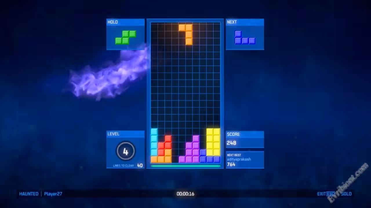 Это старый добрый тетрис. Конечно в игре намного лучше графика, в этом тетрисе кроме классического режима присутствуют и другие режимы игры, к примеру: Марафон, Спринт, Схватка, Бесконечный уровень, Призрак, На время. Из больших особенностей игры могу выделить режим "Схватка" в котором вы будите играть против другого игрока - на одном ПК, так же есть интересный режим "Команда на команду", в ней принимают участие четыре игрока, в каждой команде по два игрока.