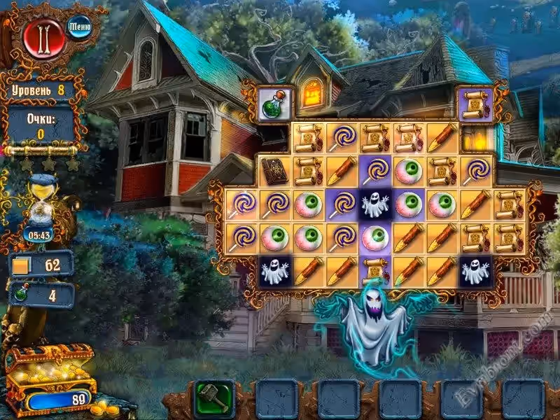 Сам смысл игры в том чтобы составлять линии из одинаковых картинок, по три или больше штук, это вам нужно будет делать до тех пор пока месть задание уровня не будет выполнено. За успешное прохождение очередного уровня, вы будите получать монетки, за них вы сможете покупать украшение для особняка, а также боевые артефакты. Вы сможете составлять комбо комбинации и этим самым получать больше очков и очень быстро заканчивать уровни. Игра посвящена Хэллоуину и стилистика игры этому соответствует.