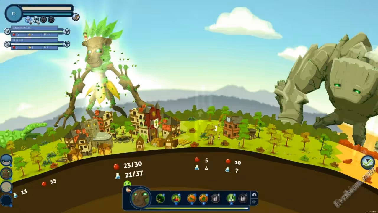 В стратегии Reus вы будите управлять самими богами гигантами, они имеют возможность управлять целым миром так как им хочется, они могут изменить ландшафт или погоду. Одним словом управлять можете всем, кроме людей - свободу воли некто не отменял. Богов всего четыре, это - Леса, Скал, Болот и Моря. Именно эта четверка управляет всем и следит за людьми, карая самых ретивых. Улучшение планеты двухуровневое, а каждое из них имеет еще по несколько вариантов, это даст большие возможности в создании самых раз экосистем.