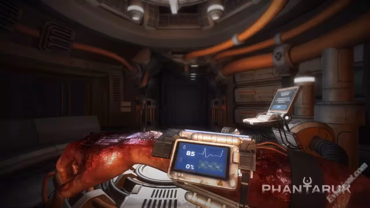В игре сочетаются разные жанры, такие как ужасы, стелс, стрелялки, выживание и это все от первого лица. В Phantaruk вы жертва каких то чудовищных экспериментов, вы оказались на космическом корабле Purity02 - это главный корабль компании H+ Corporation, на ней проводили секретные исследования. Корабль населяет монстр под названием Phantaruk, вы перед ним беспомощная жертва (как было в