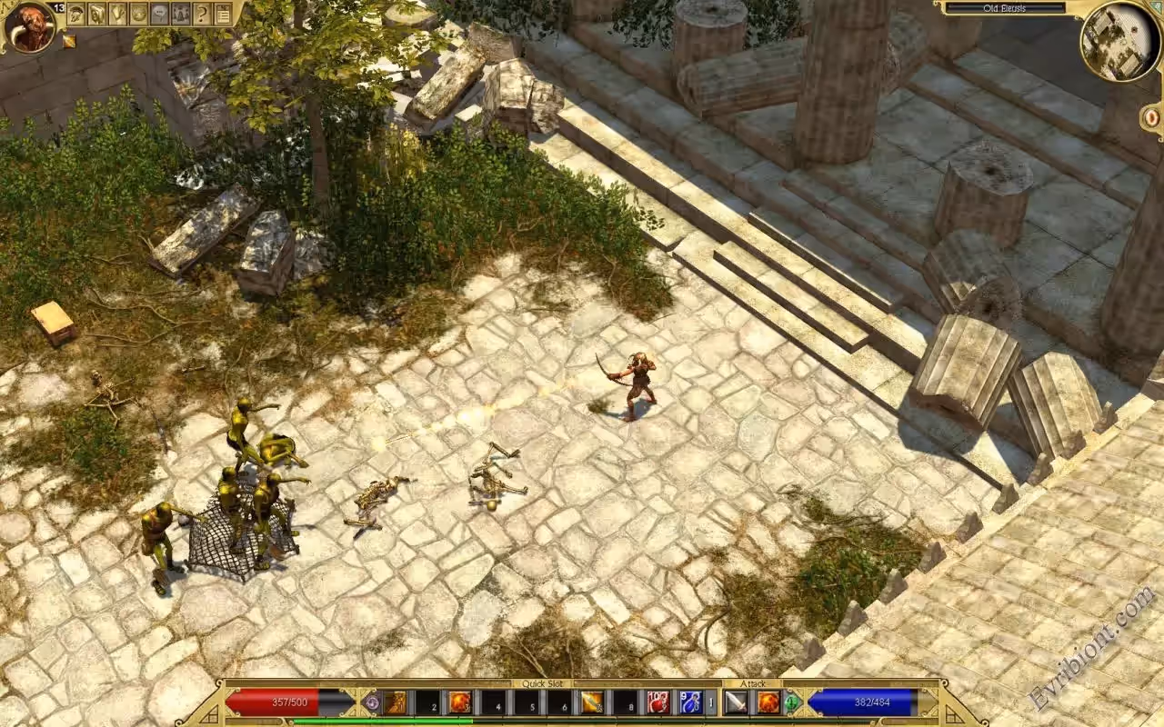 Сама же игра Titan Quest была создана по настоящей мифологии Египта и Древней Греции, вы попадете в реалистичный древний мир, здесь будут идти войны между добром и злом. Вы станните на защиту мира который был разрушен новыми и старыми богами во время их сражений. Вам предстоит путешествовать по легендарным местам древности, сражаться с различными монстрами тех времен, среди которых такие известные как кентавры, циклопы, гидры... С помощью разветвленных систем модификаций и умений, вы сможете развивать вашего персонажа как вы того пожелаете. После того как вы справитесь с чудищами на земле, вы отправитесь в земли Тартара. И там вы снова встретите известных из Греческой мифологии врагов.