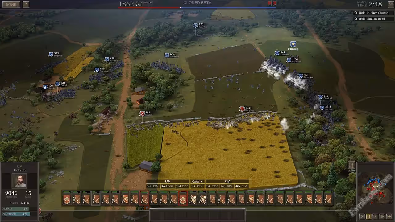 В игре Ultimate General: Civil War вы попадете в самые кровавые времена для Америки - а именно, период Гражданской войны в 1861-1865 года. Игра стратегически тактическая в которой вы будите управлять как маленькими группами солдат, так и большими армиями. Компания насчитывает больше пятидесяти сражений, там будет все, от захватов фортов, до сражений в чистом поле. Ход самой войны будет полностью зависеть от ваших действий и быстрее всего не будет исторически достоверным. При желании вы можете проходить исторические миссии отдельно - там будет все по реальным событиям.