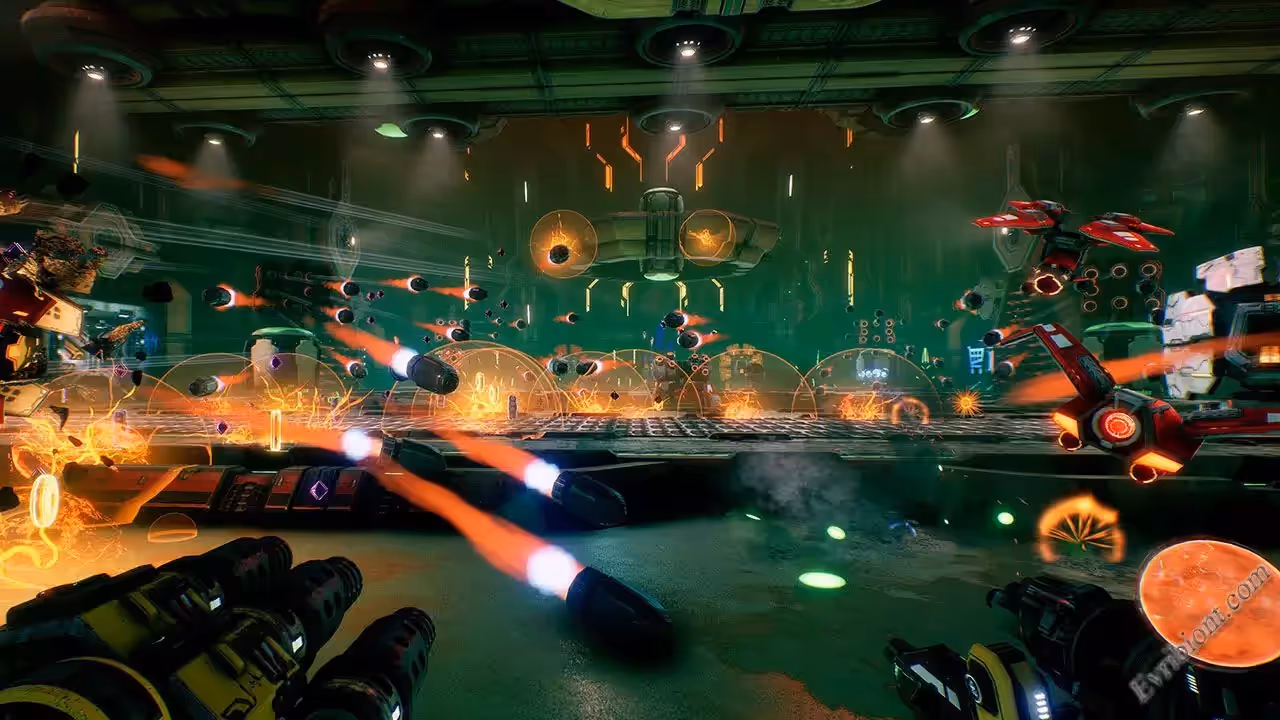 В Mothergunship смешана гремучая смесь с динамического шутера и очень не обычной системой создания оружия. Количество врагов и летящих в вас пуль, будет просто за пределом разумного. Используя супер костюм, сразитесь с огромными боссами и с самим кораблем-маткой.