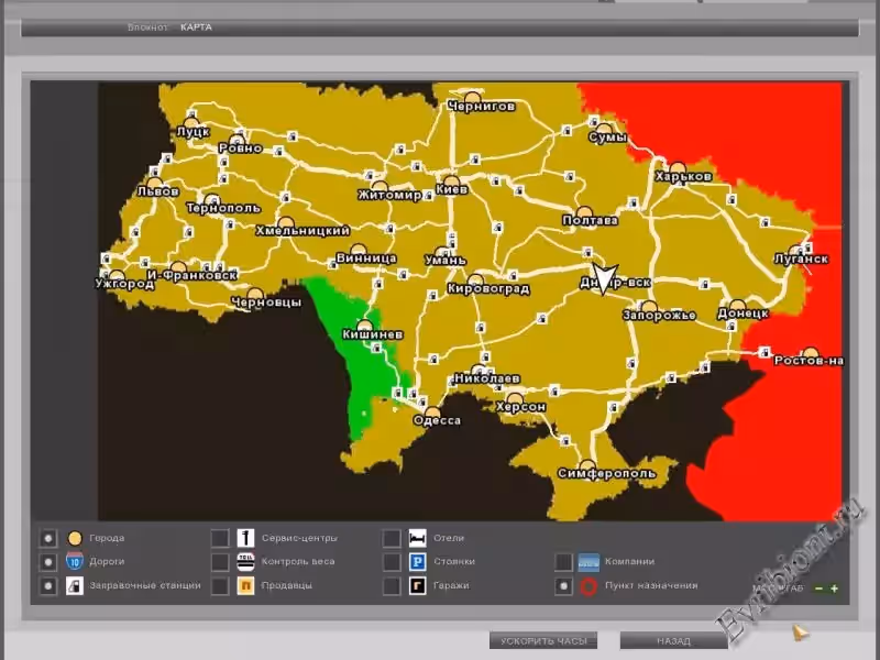 18 Стальных колес: Украинские просторы» настоящая Украинская карта авто дорог. Вы будете перевозить грузы по Украинским магистралям, трассам, сельским дорогам.