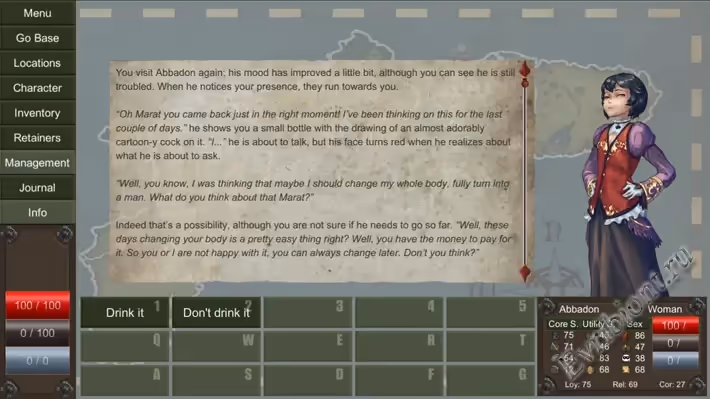 Год выпуска: 2020 Жанр: Текстовая, Ролевая Игра, Фэнтези, Симулятор Свиданий, Главный Герой-Мужчина, Девушка-Монстр, Монстры, Создание Персонажа, Оральный, Анальный, Вагинальный, Боевой, Пушистый, Гей, Менеджмент, Беременность, 2dcg Цензура: Отсутствует Разработчик/Издатель: DuoDevelopers Платформа: Windows Тип Издания: В Разработке Версия: v.0.7.18 Язык игры: Английский Язык интерфейса: Английский Пароль на архив: Downloaded from Porno-Island