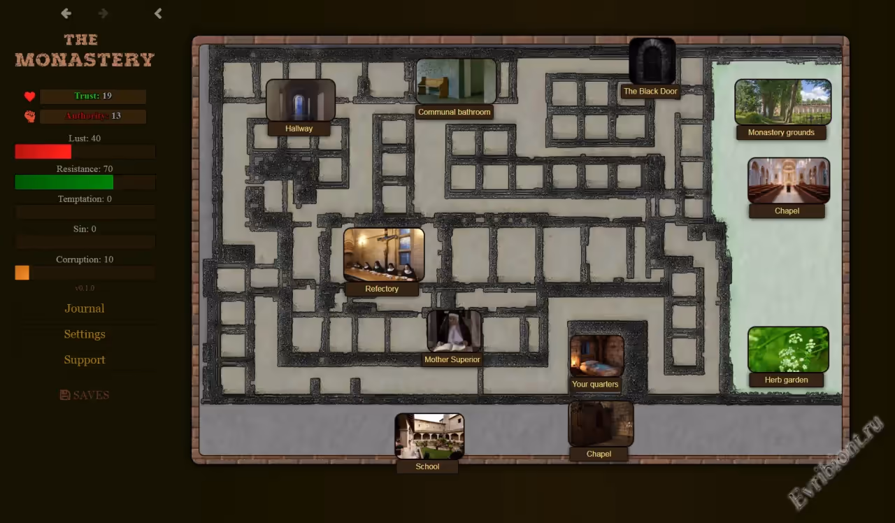 Вы играете за священника, отправленного в монастырь монахинь расследовать серию таинственных инцидентов, связанных с ночными нападениями на монахинь, когда они спят. Монахини делят монастырь с орденом монахов, и стена отделяет их друг от друга, чтобы гарантировать, что все они соблюдают обет безбрачия. Во время вашего пребывания в монастыре вы также можете посетить школу для молодых женщин, которой руководят монахини, и принять исповедь у людей из близлежащего города.