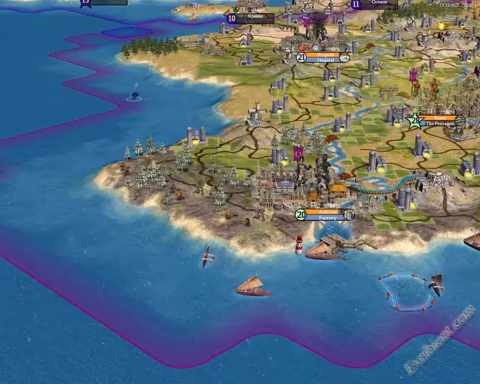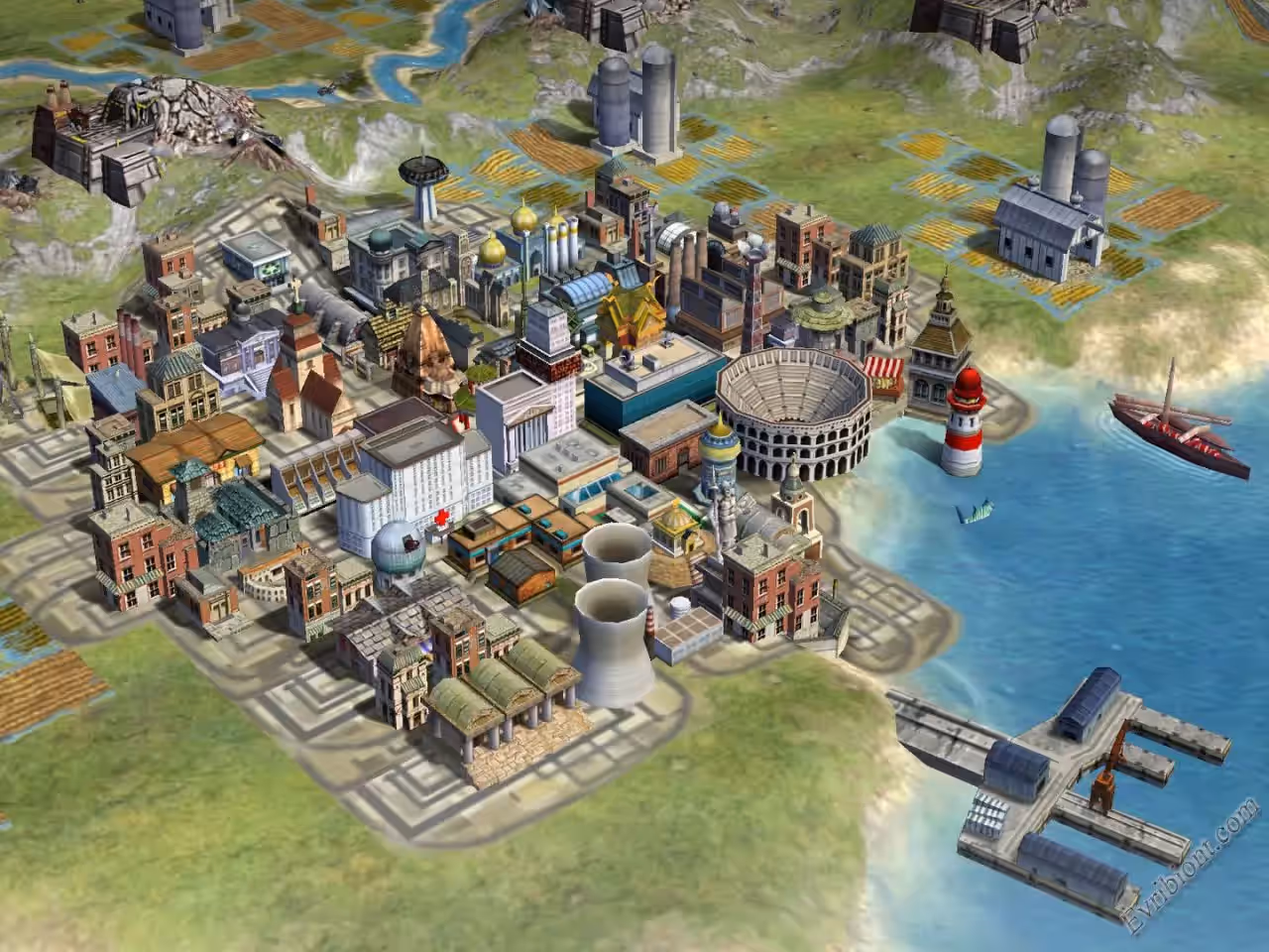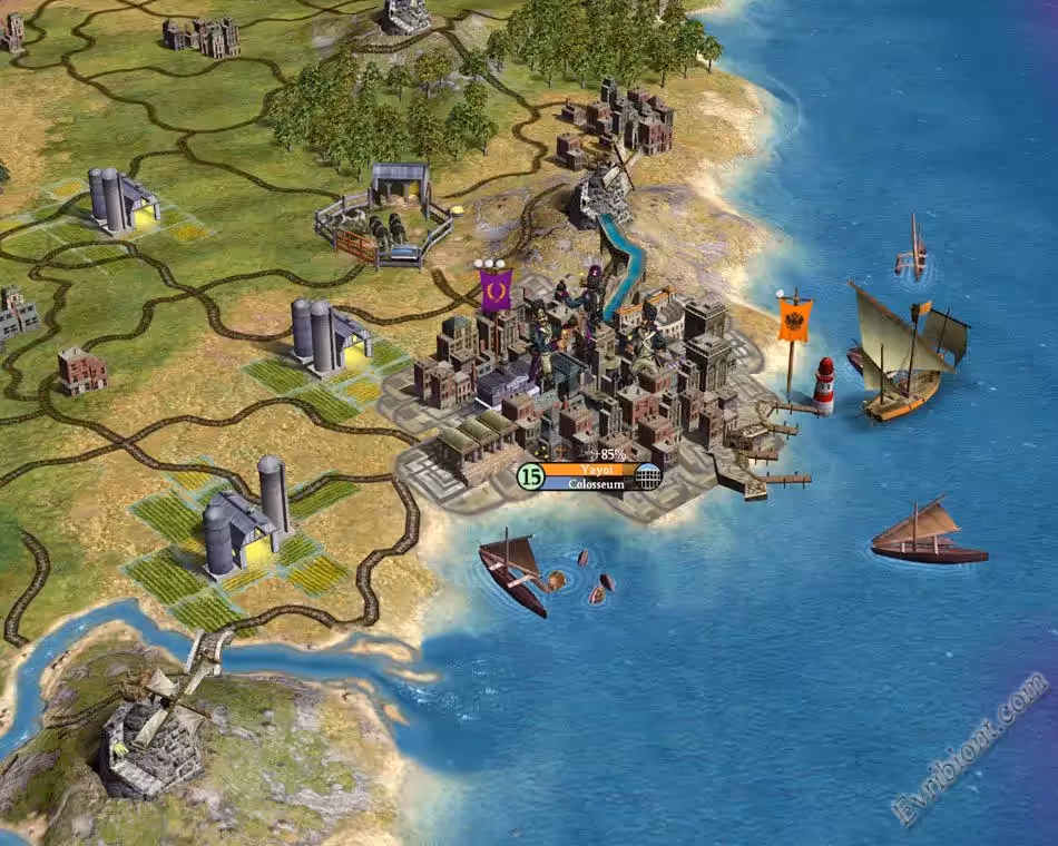 В отличии от третей части в четвертой еще появилась религия, вы можете строить церкви, само собой в игре намного улучшилась графика. Это сборник игр Цивилизации - 4.