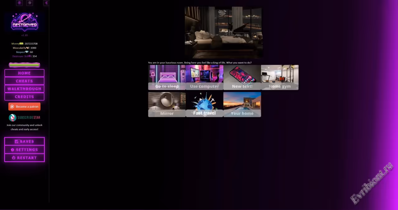 Destroyer - это HTML-игра с открытым миром, где весь смысл в том, чтобы доминировать и уничтожать все дыры вокруг. Игра полна грубого секса, крепких выражений (ломаный язык, но я все еще учусь!) и некоторых глупых мемов.