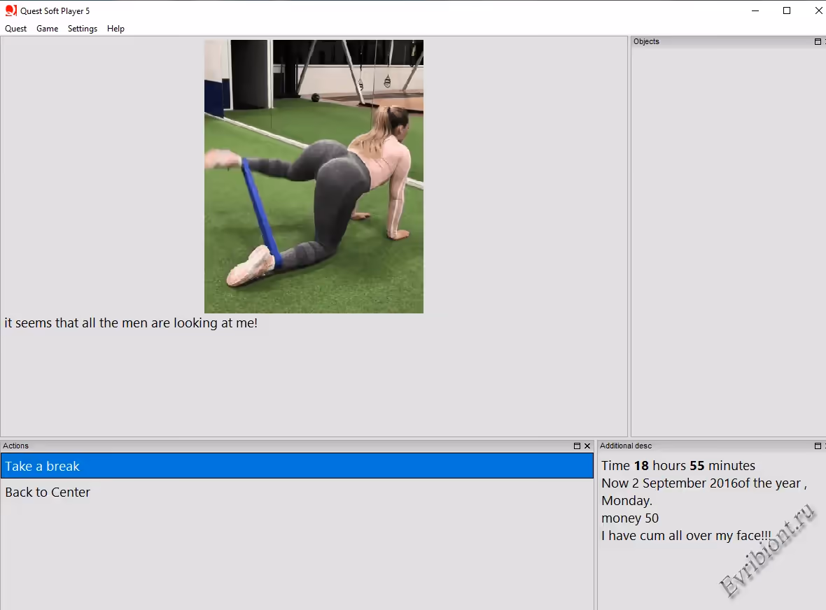 Вы должны играть за Сару, женщину 35 лет, которая очень привлекательная и почти каждый, кого вы встретите, хочет трахнуть ее. Эта игра сосредоточена на сексе. Нет интересного сюжета или многочасовой работы в игре Sara. Конечно, вы можете работать в офисе, ходить на уроки танцев, работать моделью или бродить по улицам города, но это не то, что является целью этой игры. Вы бы хотели получить работу в борделе? Это отлично! Работать учителем в школе и издеваться над учениками и другими учителями? Привет и привет! Быть проституткой в гетто? Точно!