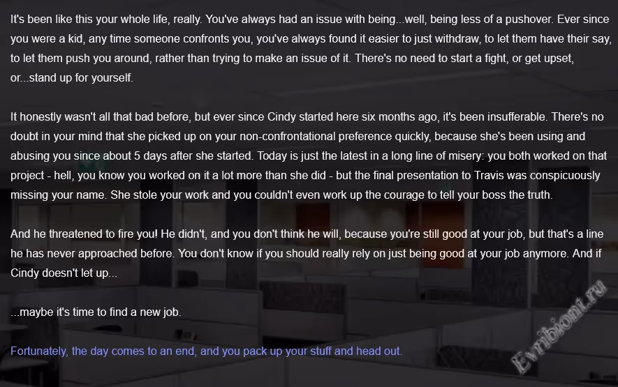 The Guide To Being Assertive — это психологическая и сексуальная порно игра с реальными людьми, где вы играете за застенчивого мужчину, которого выгнали с работы из-за его неуверенности. Все меняется после визита к психотерапевту, который предлагает нестандартный метод — гипноз. Но это лишь начало пути.