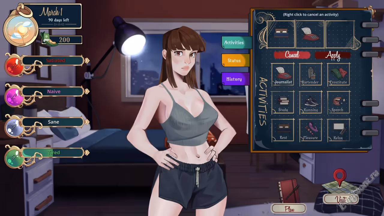 Как вы собираетесь удовлетворить ее жажду крови? Веспер — наивная девушка из маленького городка. Вы можете решить, сохранит ли она девственность, начнет ли убивать или в конечном итоге станет жертвой банды в переулке. Кто знает, может быть, она поддастся вожделению и попытается самостоятельно решить свои проблемы?