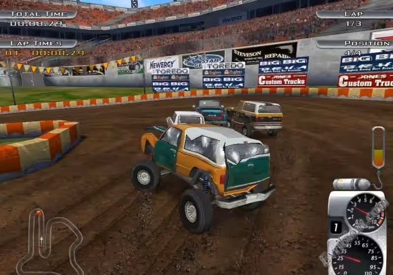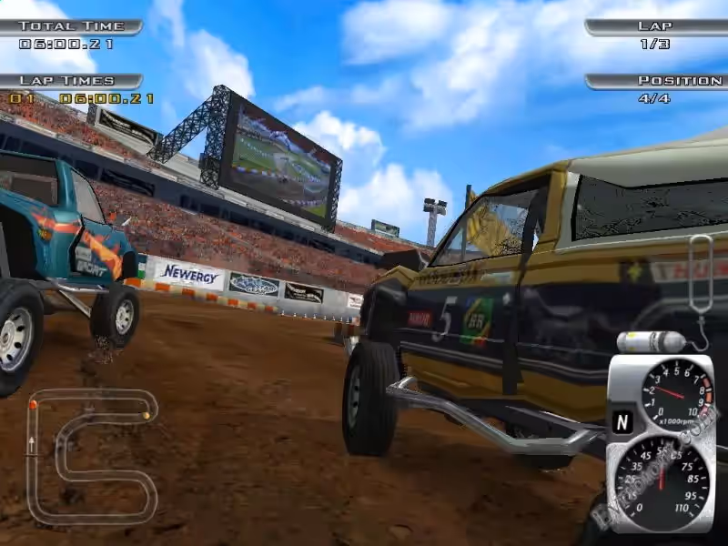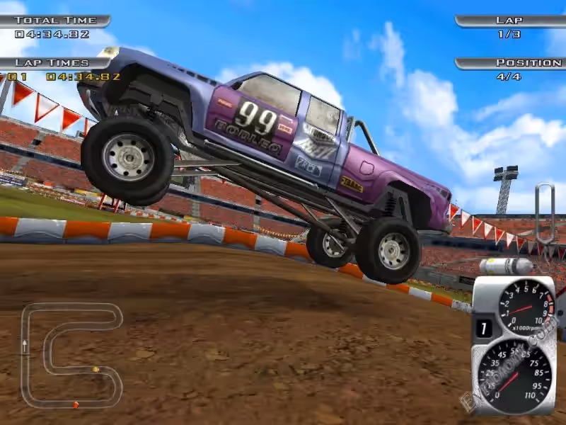 Хочешь выиграть гонку? тогда выбери машину по вкусу и мчи к финишу несмотря ни на что. Свою машину вы сможете улучшать после каждой выигранной гонки. Вы водитель вне дорожника - модернизированного в монстр-мобиль. Графика хорошая, если смотреть на год выпуска игры, вас ждет много трасс и сильнейшие соперники.