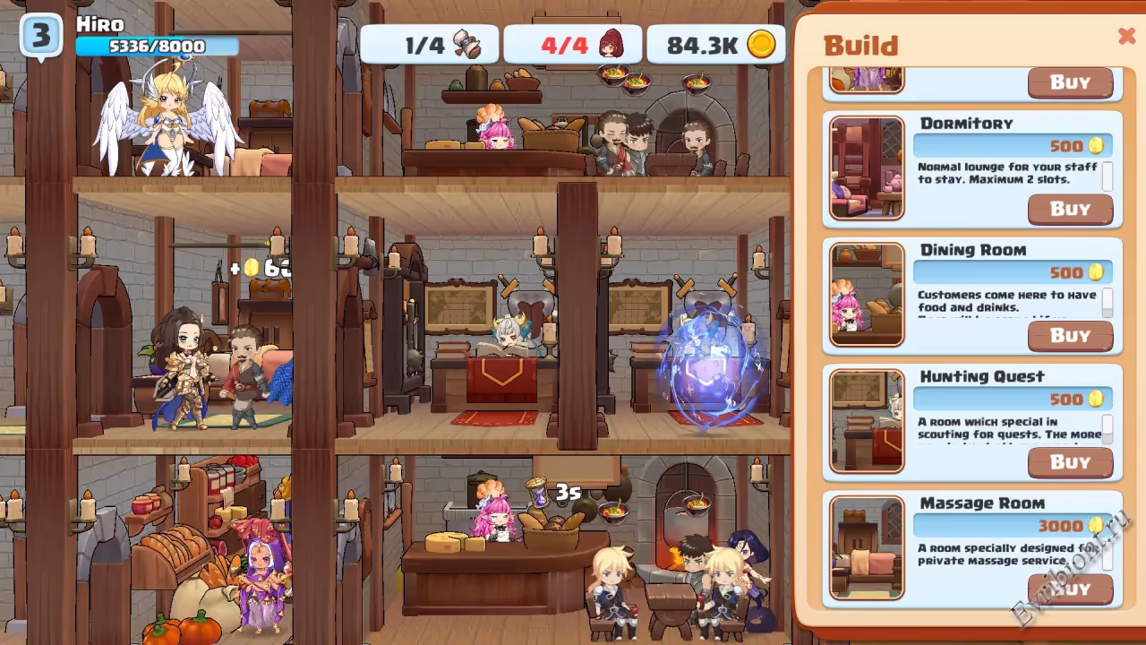 После вашей смерти в результате автомобильной аварии богиня призвала вас позаботиться о таверне в мире исекай. Ваша задача состоит в том, чтобы нанимать разных девушек из разных племен и рас для помощи в ведении бизнеса, а также отстраивать таверну комнату за комнатой, чтобы расширить бизнес.