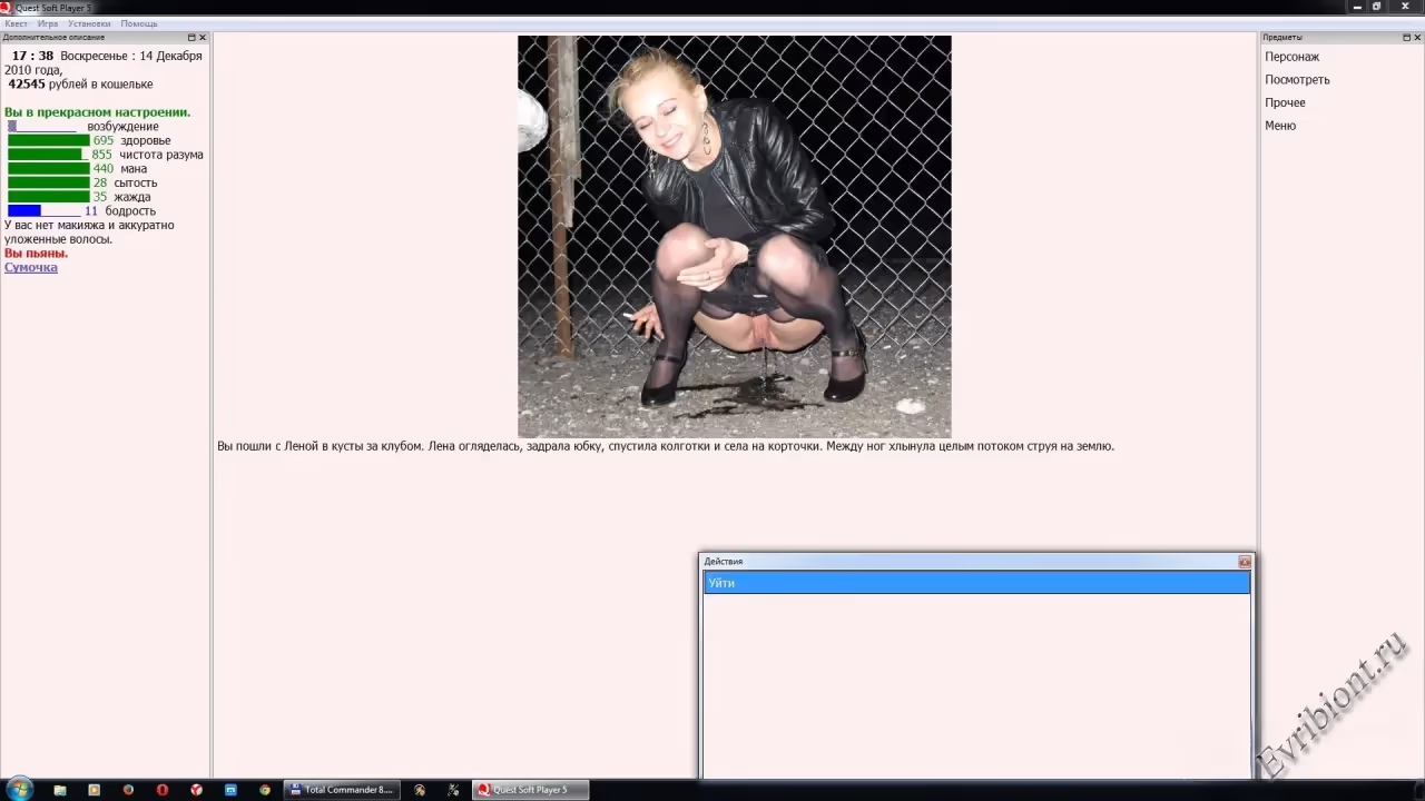 В процессе игры у вас есть возможность стать кем угодно, от быдла до королевы, а иногда и кем-то средним. Игра включает в себя рождение детей и приобретение домашнего животного с соответствующими последствиями. Сход с ума. Можно купить компьютер и играть в игры, рекламировать себя и просто смотреть порно. Много параметров влияют на процесс. Я не буду говорить о силе, ловкости и умении, потому что это очевидно. После приобретения навыков появляются параметры, например танец, танец профессионала или танец на шесте. В игре почти все «связано». Если вы учитесь на 2 и 3 классах, ваш отчим и мама будут ругать вас. После того, как выпила водку, «береги пилотку»! В игре можно стать жирным или анорексиком. Одежда должна соответствовать размеру. Потребности включают питание, сон, мытье, развлечения, трящение и зарабатывание денег.